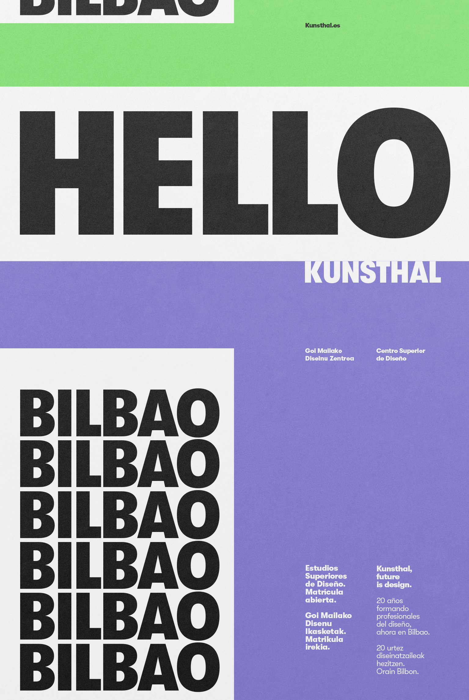 Campaña realizada para la escuela de diseño Kunsthal. Dirigida a la ciudad de Bilbao y coincidiendo con la apertura e inauguración de su nueva sede en la ciudad en 2020.